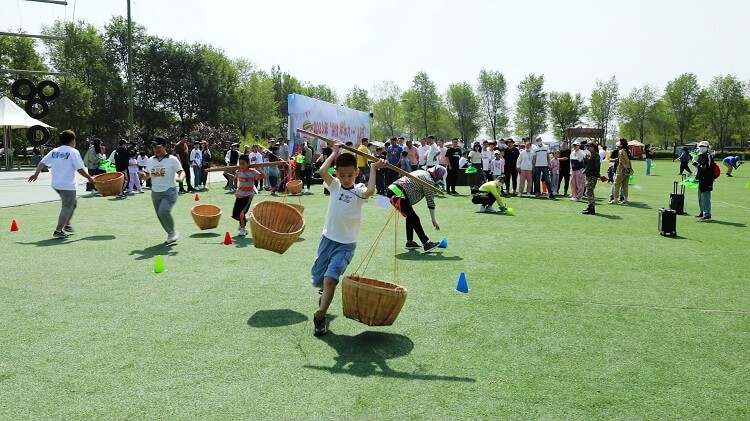 首先我們和祥和莊園的兩位教官一起開(kāi)展了“農(nóng)事競(jìng)技”活動(dòng),里面包括了獨(dú)輪車扁擔(dān)、小背簍運(yùn)糧、旱地龍舟等多個(gè)項(xiàng)目,尤其是在小背簍運(yùn)糧和旱地龍舟的項(xiàng)目中,直接將活動(dòng)推向了最高潮,分組比拼的環(huán)節(jié)始終難分勝負(fù),多次的加時(shí)賽才拼出最終優(yōu)勝者。